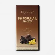 Dark chocolate with pineapple makes a sweet-savory taste combo top your taste bud preference list, which brilliantly blends sweetness with a little fruity tang. A harmonious blend of silky dark chocolate elegantly combined with naturally sweet pineapple and natural vanilla. we have this chocolate in 100g, 55g, 40g bar and also in presentation boxes contain round and spherical shaped chocolates of 10g and 20 g each.